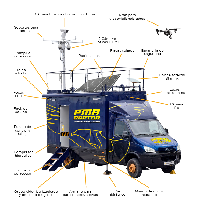 Los PMA RAPTOR están diseñados para convertirse en el centro neurálgico de cualquier operativo. Integran tecnología avanzada que permite obtener información precisa, analizarla al instante y coordinar equipos con total fiabilidad, incluso en escenarios complejos.